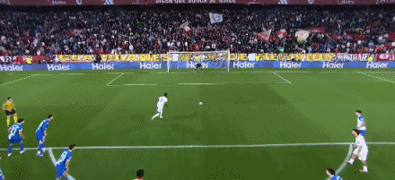 第35分钟,扳平比分!博尼亚尔头球冲顶破门,塞维利亚1-1马竞